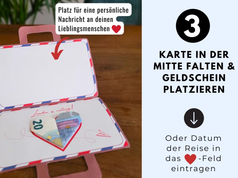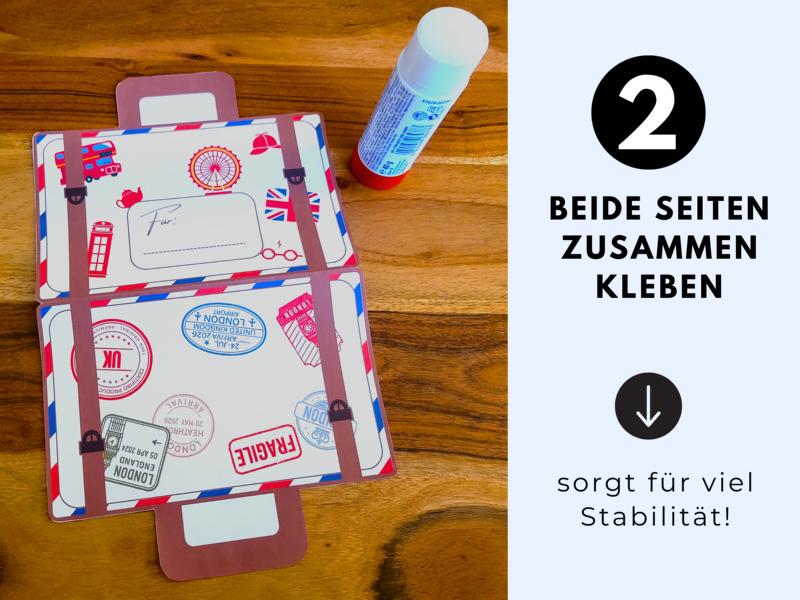 Du möchtest vielleicht keine komplette London-Reise verschenken, sondern einfach etwas für die Urlaubskasse beisteuern? Auch das kannst du super gut mit dem DIY-Koffer umsetzen. Statt Geld lieblos in einen Umschlag zu stecken, bastelst du ein schönes London-Geldgeschenk.